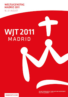The letters of the World Youth Day logo stand for "Jornada Mundial de la Juventud," the English term for World Youth Day. The designer of the logo, Jose    Gil-Nogues, had reported to his draft one of the Archdiocese of Madrid, led by Archbishop Antonio Maria Rouco Varela, also in 1989, when Archbishop of Santiago de Compostela, the then Fourth World Youth Day had done, won the competition announced. Jose Gil-Nogues stated in the crown was an "M" to recognize that for Mary and for Madrid stands. - The symbol also stands for the crown of the Virgin of Almudena, venerated as the patron saint of Madrid. The cross makes the theme for World Youth Day clear. "Rooted and founded in Christ, a believer" The use of warm colors (red, orange and yellow) provides unmistakable warmth and heat, characteristic of a city like Madrid, a country like Spain. These colors also reflect the "heat of the divine Trinity love" resist.